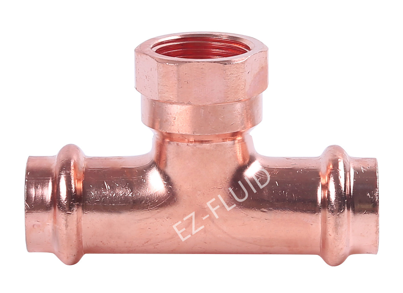 The EZ-Fluid 1" X 1" X 3/4" Press X Pressress X FPT COPPER PRESS FEMALE TEE REDUCER ensures efficient press pipe branching, providing a strong and leak-proof connection.
