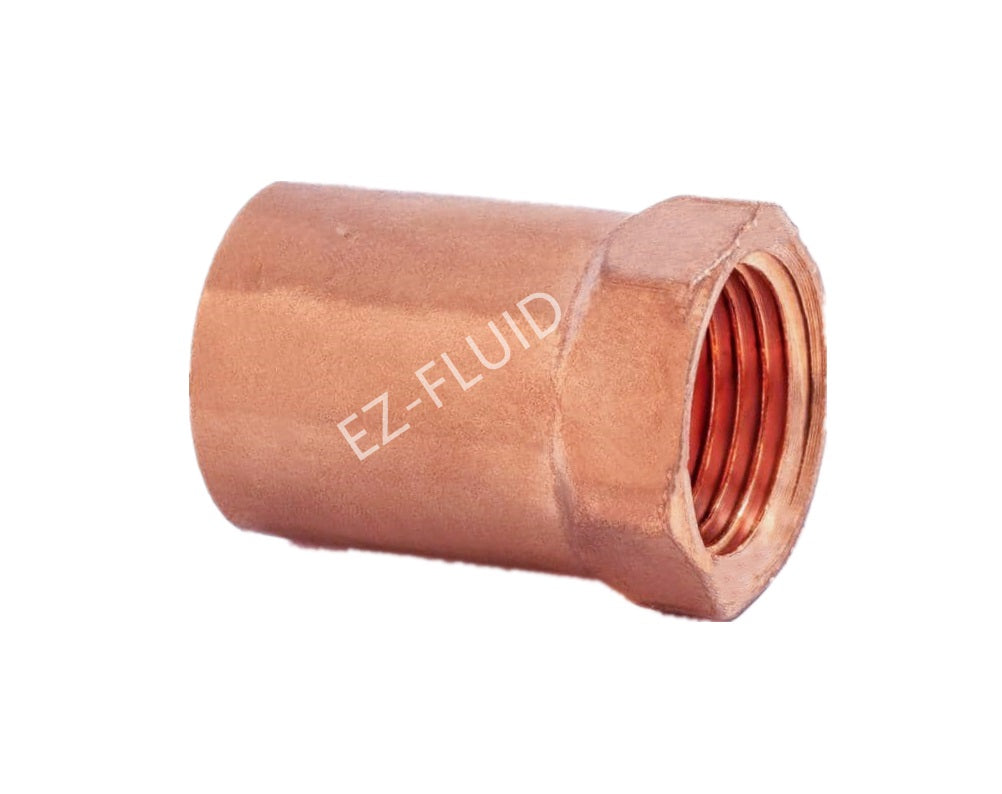 Securely connect copper pipes to male-threaded fittings with the EZ-Fluid 1-1/4" X 1" C X F FEMALE ADAPTER COPPER, designed for a tight seal.