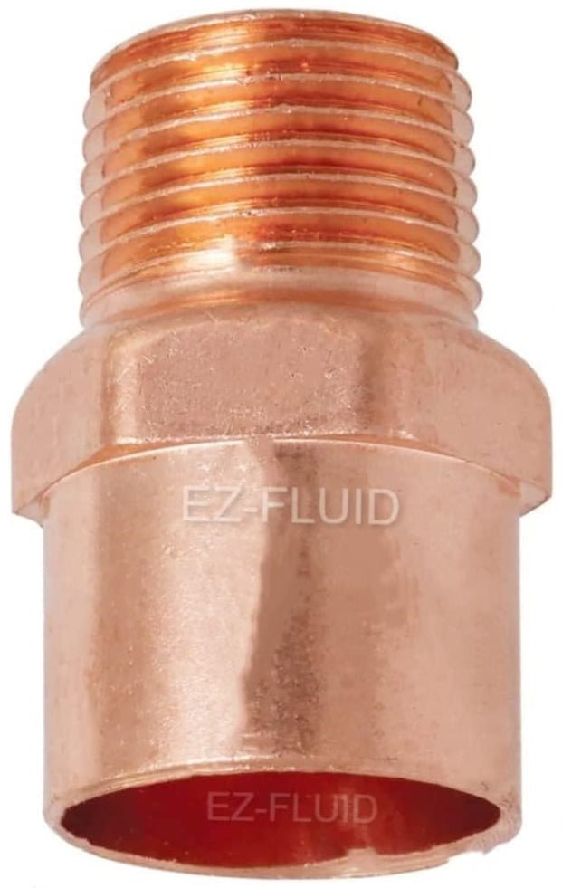 Provide a strong and durable connection between copper pipes and female-threaded fittings with the EZ-Fluid 1-1/4" X 3/4" C X M MALE ADAPTER COPPER.