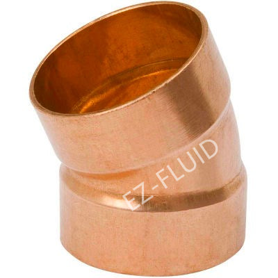 The EZ-Fluid 3" C X C Sweat 22-1/2 ELBOW DWV COPPER WROT is a durable DWV copper elbow that allows smooth directional changes in drainage systems.