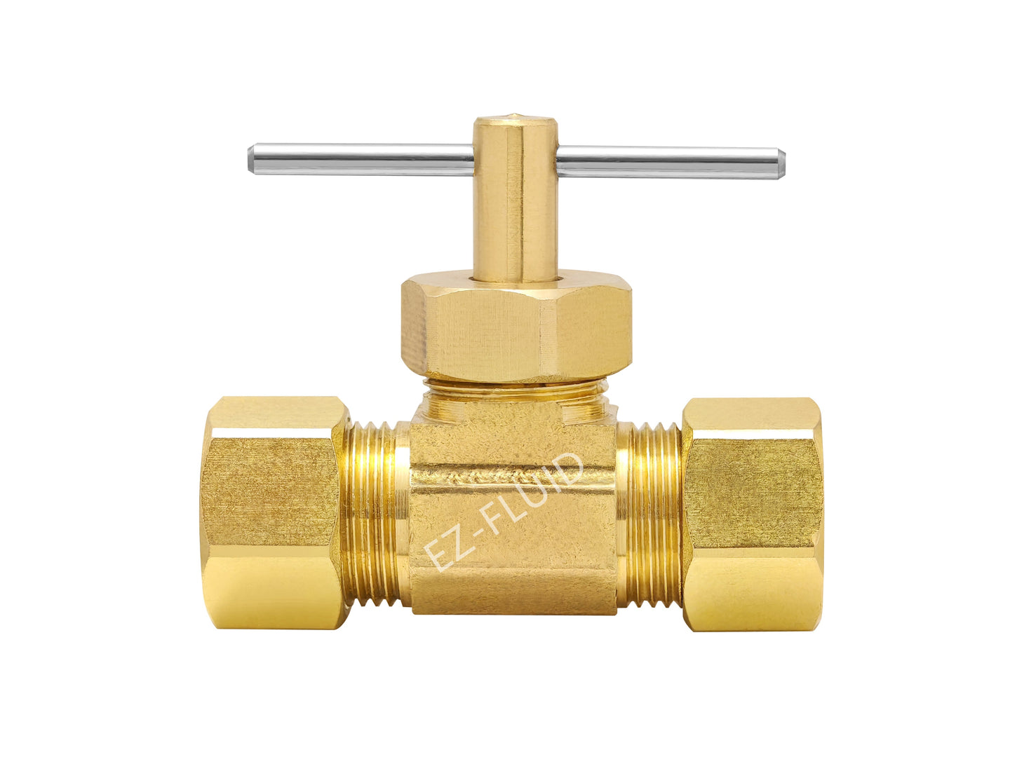 EZ-Fluid 1/4" Brass Compression x 1/4" Brass Compression Needle Valve is a premium plumbing fitting designed for durability and secure connections. It meets industry standards and is ideal for professional plumbing installations.