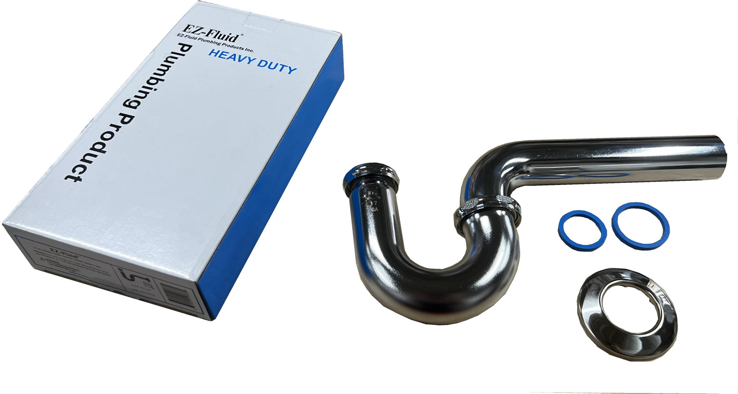 The EZ-Fluid 1-1/2" X 1-1/4" Heavy Duty 17GA Brass P-TRAP w/ Brass Nuts Drain Chrome Plated is built with premium materials, offering superior performance for your plumbing needs.
